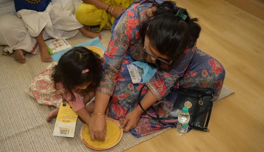 The ceremony began with a traditional blessing, followed by parents guiding their children as they traced their first letters. Teachers at Basil Woods Juniors Kharghar gently supported each child, encouraging curiosity and confidence. The little ones were excited and cheerful — and parents felt emotional watching their child take the very first step into formal education.