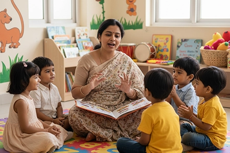 Basilwoods follows an integrated play-based curriculum backed by the Iscon Foundation, Bangalore. Through music, art, storytelling, and hands-on activities, we nurture creativity and critical thinking, placing us among the best playgroups in Mumbai.